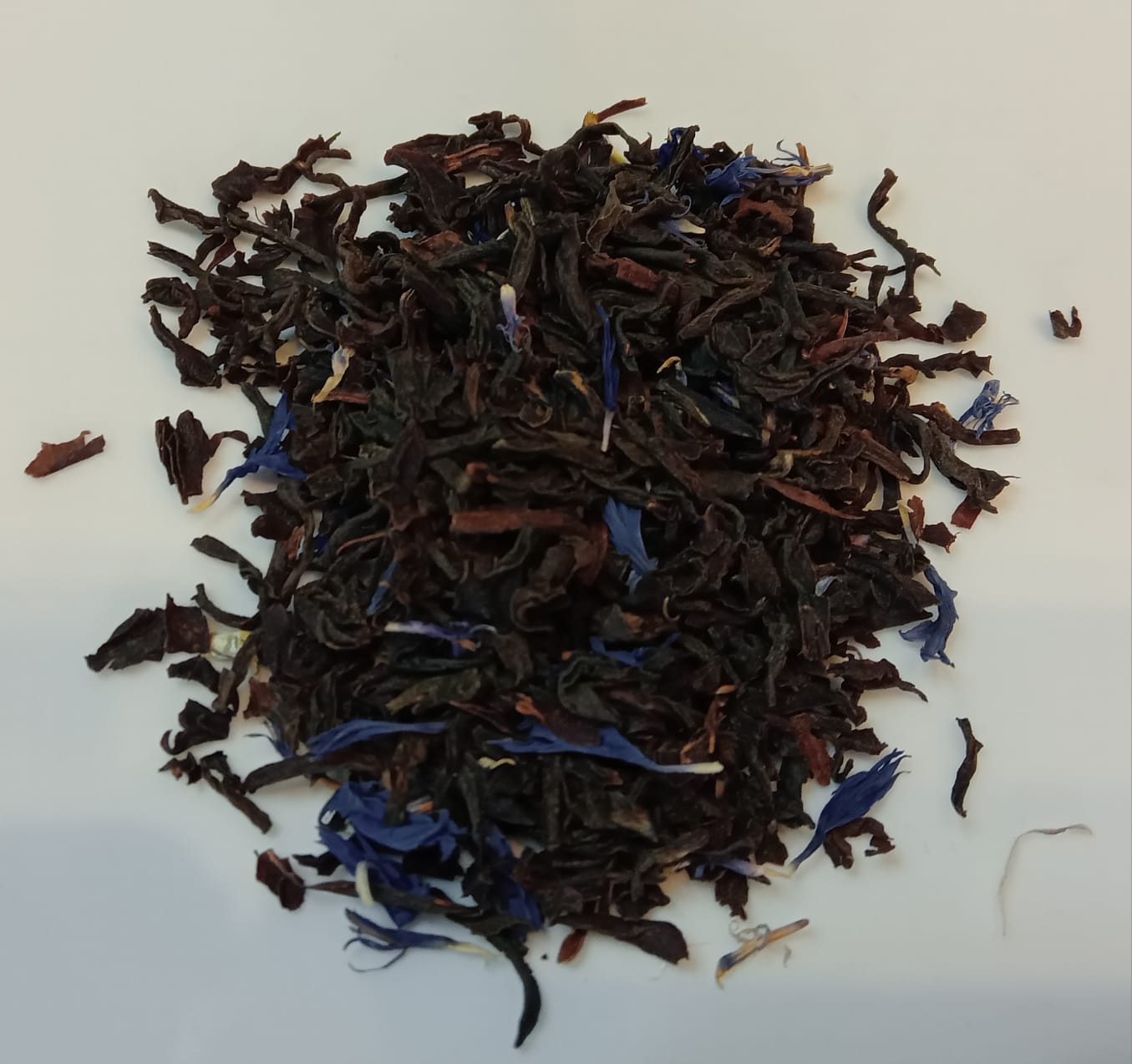Schwarzer Tee, Kornblumenblüten, Bergamottöl, schwarzes Johannisbeerenaroma,