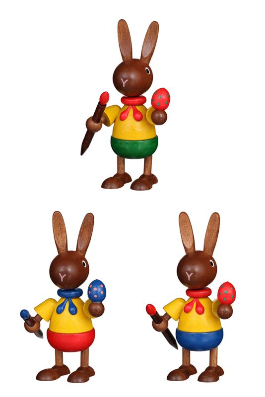 Wer hat wohl das schönste Ei gemalt? Die drei kleinen Maler präsentieren stolz ihre Werke. Ihre gelben Hemden strahlen mit der Frühlingssonne um die Wette.