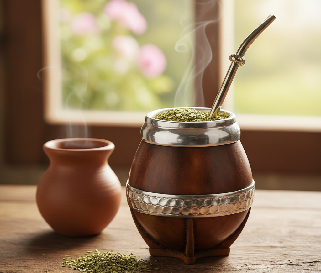 Traditionell wird Mate-Tee aus sogenannten Kalebassen mit der dazugehörigen Bombilla (Trinkhalm) getrunken.